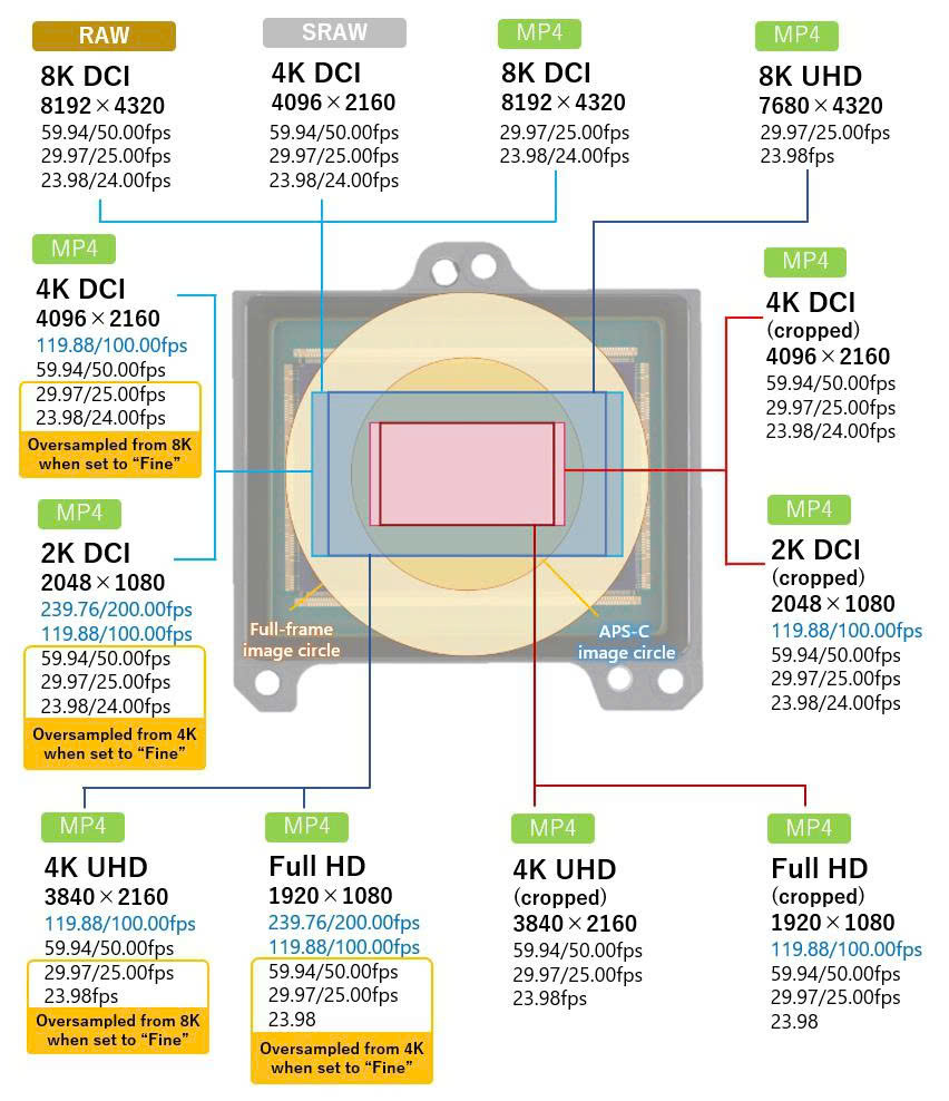 | Video (Internal) | 8K RAW 30p, 4K 120p | 8K RAW 60p, 4K 120p (In-camera Upscaling) |