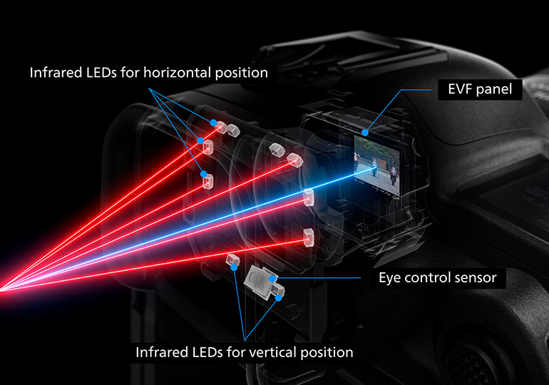- Canon EOS R5: Dual Pixel CMOS AF II, nhận diện người (mắt, mặt, đầu), động vật (mắt, mặt, thân). Phạm vi làm việc AF: EV -6 đến 20.
