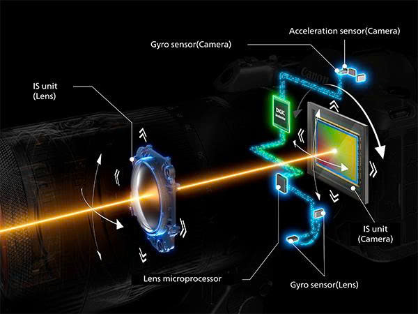 - Canon EOS R5: 5 trục, bù trừ lên đến 8 stop (kết hợp với ống kính IS).